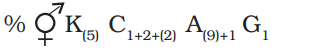 Write the floral formula of a actinomorphic, bisexual, hypogynous flower with five united sepals, five free petals, five free stamens and two united carples with superior ovary and axile placentation.