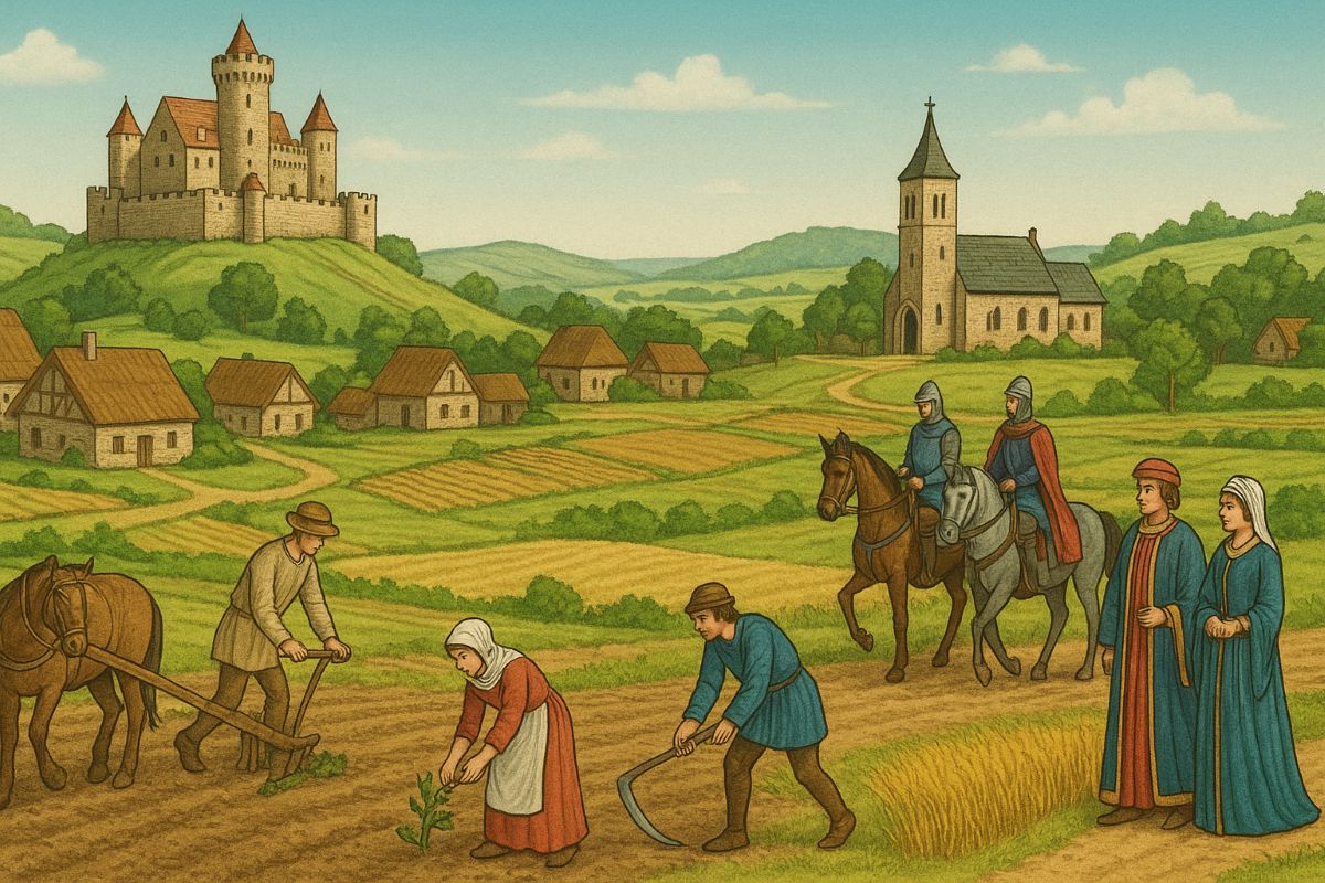 The manor was self-sufficient, and peasants worked on the lord’s demesne.