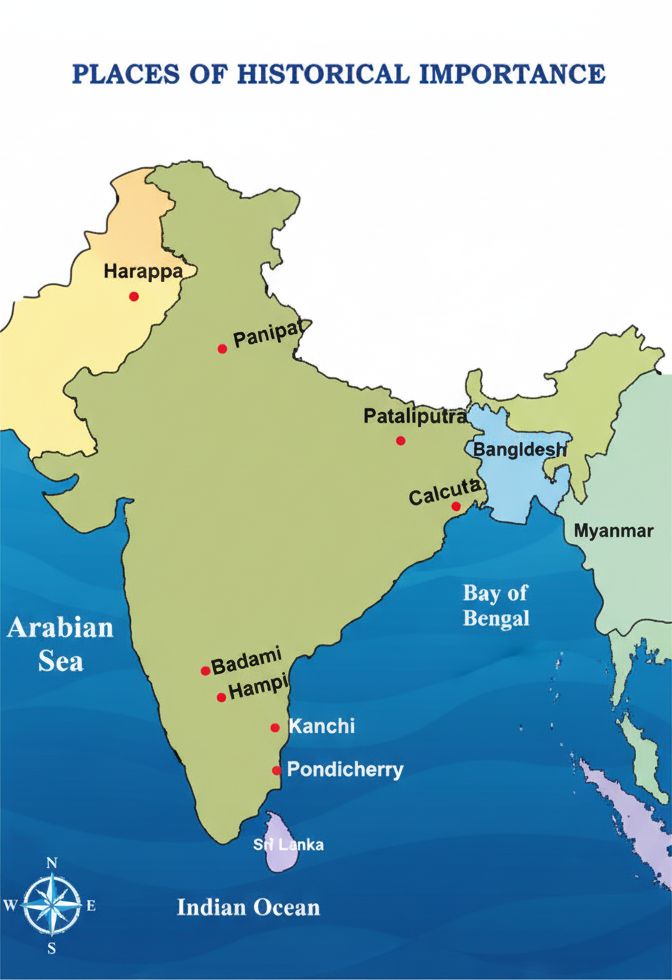 Mark any Five of the following Historical places on the outline map of India, and add an explanatory note on each marked place in Two sentences.