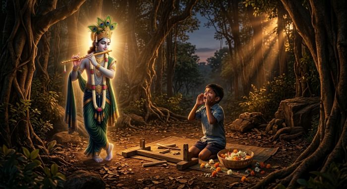 ಆ ಸಮಯದಲ್ಲಿ ಬನದ ಗೋಪಾಲ (ಶ್ರೀಕೃಷ್ಣ) ಅವನಿಗೆ ಧೈರ್ಯ ನೀಡಿ ಸಹಾಯ ಮಾಡುತ್ತಾನೆ. ಇದರಿಂದ ತಾಯಿಯ ಭಕ್ತಿ ಮತ್ತು ಮಗನ ನಂಬಿಕೆ ಸತ್ಯವಾಗುತ್ತದೆ.